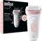 Αποτριχωτική μηχανή epilator της εταιρείας Braun, κατάλληλη για χρήση στο σώμα και την περιοχή του μπικίνι. Σχεδιασμένη με ειδικές περιστρεφόμενες ηλεκτρικές τσιμπίδες μεγάλης ταχύτητας, αφαιρεί από τον θύλακα τις λεπτές ή χοντρές τρίχες κάθε μήκους, προσφέροντας μακροχρόνια αποτελέσματα και απαλότητα στην επιδερμίδα. Μπορεί να χρησιμοποιηθεί σε υγρό ή στεγνό δέρμα.