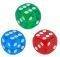 Ζάρια 18 mm. διαφανή μη αριθμημένα χρώματος κόκκινου, σε συσκευασία των 100 τεμαχίων.