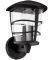 Πρόκειται για ένα επιτοίχιο φωτιστικό με κλασικό σχεδιασμό, στρογγυλή βάση και κύριο μέρος που αποτελείται από ένα κρεμαστό φανάρι σε μαύρο και διαφανές χρώμα.