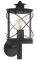 Πρόκειται για ένα επιτοίχιο φωτιστικό με κομψό σχεδιασμό, στρογγυλή βάση και κύριο μέρος σε σχέδιο κυλινδρικού φαναριού και μαύρο χρώμα με διαφανείς λεπτομέρειες.