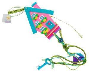 Είναι κατασκευασμένο από πηλό και διαθέτει πολύχρωμα κορδόνια με φυλαχτό, ματάκι, κουδουνάκι, καρδούλα και κλειδί.