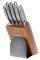 Το σετ, από την εταιρία Bakaji, αποτελείται από 6 μαχαίρια γενικής χρήσης και μία ξύλινη βάση αποθήκευσης. Τα μαχαίρια έχουν λεπίδες από ανοξείδωτο ατσάλι και πλαστικές λαβές. Πλένονται εύκολα στο πλυντήριο πιάτων. Ιδανικά για κοπή ψωμιού, λαχανικών, φιλέτων ή κρέατος.