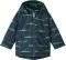 Μπουφάν από την εταιρεία Name it.Διαθέτει υπερυψωμένο γιακά, ενώ κλείνει με φερμουάρ και μεταλλικά κουμπιά στο μπροστινό μέρος. Διαθέτει αποσπώμενη κουκούλα και ελαστικές λεπτομέρειες στις μανσέτες για επιπλέον προστασία από το κρύο. Στο μπροστινό μέρος υπάρχουν δύο πλευρικές τσέπες. Σε χρώμα σκούρο μπλε και διακοσμημένο με μοτίβο από δεινόσαυρους , ενώ patch με την επωνυμία της εταιρείας υπάρχει στο πίσω μέρος και στο ένα μανίκι στο πλάι.