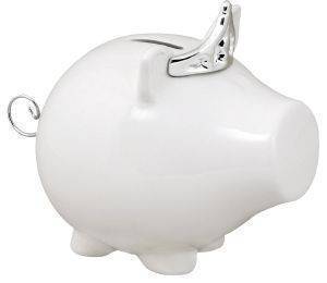 Γουρουνάκι κουμπαράς από πορσελάνη, σε λευκό χρώμα, με τιάρα ασημί.