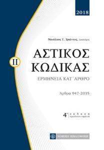Ο παρών δεύτερος τόμος περιλαμβάνει την ερμηνεία των διατάξεων από τα τρία τελευταία Βιβλία του Αστικού Κώδικα (Εμπράγματο, Οικογενειακό και Κληρονομικό Δίκαιο). Η 4η πλήρως επικαιροποιημένη έκδοση έχει εμπλουτιστεί με πλούσια νομολογία, βιβλιογραφία και αρθρογραφία από τον νομικό περιοδικό τύπο, ενώ οι διατάξεις του Αστικού Κώδικα παρατίθενται όπως ισχύουν μετά τις τροποποιήσεις που επέφεραν σε αυτόν οι: Ν 3853/2010 [545, 546 ΑΚ], Ν 4055/2012 [69, 73, 81, 82, 83, 346, 1438, 1441, 1769, 1770, 1771, 1772, 1773, 1774, 1776, 1956, 1958, 1959, 1960, 1961 ΑΚ], Ν 4139/2013 [261, 656 ΑΚ], Ν 4182/2013 [1865, 1866, 1869 ΑΚ], Ν 4268/2014 [1569, 1570 ΑΚ] και Ν 4356/2015 [1354, 1462, 1463, 1576 ΑΚ].