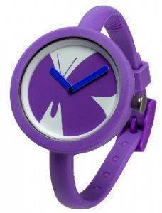 Σε μωβ χρώμα, με πολύ λεπτό λουράκι απο σιλικόνη και φόντο λευκό με μια πεταλούδα στο καντράν!