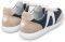Παπούτσια με την υπογραφή της Camper σε σκούρο μπλε, μπεζ και λευκό χρώμα.