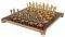 Πρόκειται για ένα ολοκληρωμένο σετ σκακιού σε ξύλινη κασετίνα με μεταλλική σκακιέρα και χρυσά-ασημί μεταλλικά πιόνια (Υψος Βασιλια: 9,7cm).