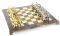 Πρόκειται για ένα ολοκληρωμένο σετ σκακιού σε ξύλινη κασετίνα με πράσινη μεταλλική σκακιέρα και χρυσά-ασημί μεταλλικά πιόνια.