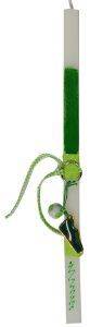 Η λαμπάδα διακοσμείται με ένα μπρελόκ με πράσινο παπούτσι.