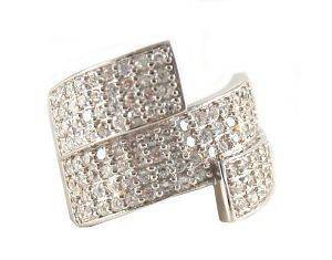 Ένα ιδιαίτερα πανέμορφο δαχτυλίδι με τρεις σειρές από καρφωμένα ζιργκόν, αστραφτερή επιλογή για μια γυναίκα με νεανικό στυλ.