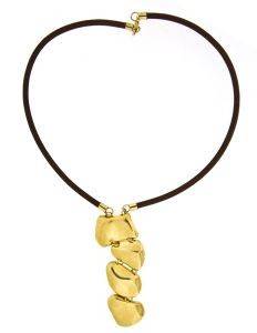 Ένα ιδιαίτερα πρωτότυπο κολιέ από καφέ δέρμα διακοσμημένο με ασήμι 925 με ντουμπλε χρυσό.