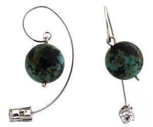 Φανταστικά σκουλαρίκια από ασημί 925 επιπλατινωμένα, με εντυπωσιακό design διακοσμημένα με τιρκουάζ πετράδι και πανέμορφο λαμπερό ζιργκόν για κούμπωμα.