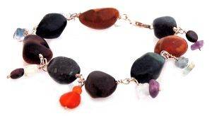 Πανέμορφο βραχιόλι διακοσμημένο με πολύχρωμες ημιπολύτιμες πέτρες από αχάτη και αμέθυστο δεμένες με ασήμι 925.