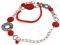 Φανταστικό μακρύ κολιέ με αλυσίδα και κορδόνι διακοσμημένο με μεταλλικά και ξύλινα στοιχεία σε κόκκινο χρώμα.