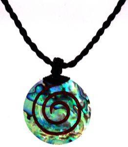 Φανταστικό κολιέ με μαύρο κορδόνι και υπέροχο στρογγυλό κεμαστό από αβαλον και κοραλί σπείρα.