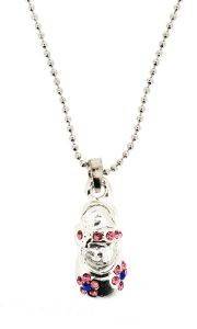 Παιδικό κολιέ παπουτσάκι διακοσμημένο με ροζ κρύσταλλα και ασημί αλυσίδα μπιλάκι.