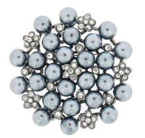 Καρφίτσα με γκρι πέρλες και μεταλλικά λουλουδάκια διακοσμημένα με κρύσταλλα.