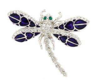 Μοντέρνα μεταλλική καρφίτσα έντομο διακοσμημένο με κρύσταλλα και μοβ φτερά