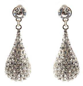 Φανταστικά σκουλαρίκια σε σχήμα δάκρυ στολισμένα με λευκά κρύσταλλα. Ιδανικό για τις κοσμικές σας εμφανίσεις.