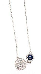Διακριτικό κοντό κολιέ από ασήμι 925 με ασημί χαμόγελο διακοσμημένο με κρύσταλλα και ματάκι