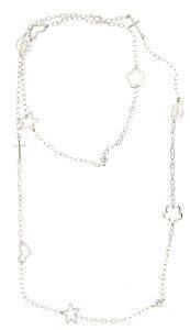 Mακρύ κολιέ Frada από ασήμι 925 επιπλατινωμένο, διακοσμημένο με ζιργκόν, αστεράκια, πουλάκια και καρδούλες.