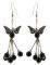 Κρεμαστά μακριά σκουλαρίκια Alexi Andriotti με ασημί μεταλλικά φτερά και μαύρες χάνδρες.