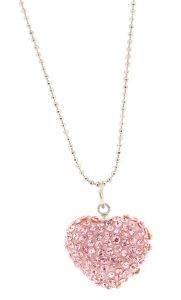 Τρισδιάστατη καρδιά διακοσμημένη με ροζ κρύσταλλα και αλυσίδα μπιλάκι .
