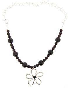 Χειροποίητο κολιέ από ασήμι 925, διακοσμημένο με μαύρο κοράλι και μαργαρίτα. Εντυπωσιακές πινελιές για κομψές εμφανίσεις.