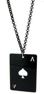 Χειροποίητο κολιέ μαύρο με μεταλλική αλυσίδα, στο τελείωμα κρέμεται τραπουλόχαρτο. Μοναδικές δημιουργίες με μοντέρνες πινελιές.
