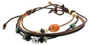 Ανδρικό δερμάτινο βραχιόλι σε καφέ και μαύρο χρώμα με διακοσμητιικά στοιχεία απο χάντρες.
