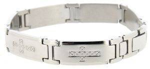 Ανδρικό βραχιόλι από μπρασελέ σε ασημί χρώμα με χαραγμένους σταυρούς.