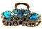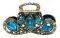 Τιρκουάζ πετράδια σε σχήμα δάκρυ και γαλάζια στρας διακοσμούν αυτό το εξωπραγματικό κοκαλάκι Alexi Andriotti σε σχήμα κορόνα.
