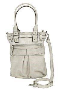 Νεανική τσάντα με εντυπωσιακό design σε μπεζ χρώμα και χερούλια που σου επιτρέπουν να την φοράς στον ώμο. Με εξωτερική θήκη φερμουαρ και δύο κρυφά τσεπάκια.