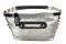 Εντυπωσιακό τσαντάκι σε ασημί χρώμα με μαύρες και μεταλλικές λεπτομέρειες.