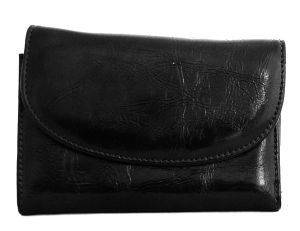 Κλασικό μαύρο πορτοφόλι με αρκετές θήκες για κάρτες και εσωτερική θήκη με φερμουαρ για κέρματα.