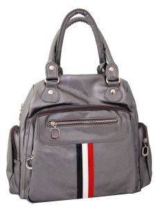 Νεανική ασημί τσάντα Αlexi Andriotti με αρκετά εξωτερικά τσεπάκια φερμουαρ. Με κοντά χερούλια, αποσπώμενο λουρί για τον ώμο και φερμουαρ για ασφαλές κλείσιμο.