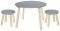 Λευκό στρογγυλό ξύλινο τραπεζάκι με ξύλινα πόδια και δύο σκαμπό που ταιριάζουν απόλυτα.