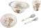 Ένα πιάτο με αντιολισθητική βάση Ένα μπολ με βεντούζα Ένα εκπαιδευτικό ποτήρι που δε στάζει Ένα σετ κουτάλι πιρούνι, ειδικά κατασκευασμένο για μικρά χεράκια.