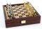 Πρόκειται για ένα ολοκληρωμένο σετ σκακιού πάνω σε ξύλινη κασετίνα με καφέ μεταλλική σκακιέρα και χρυσά-ασημί μεταλλικά πιόνια.