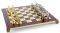 Πρόκειται για ένα ολοκληρωμένο σετ σκακιού σε ξύλινη κασετίνα με πράσινη μεταλλική σκακιέρα και χρυσά-ασημί μεταλλικά πιόνια.