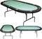 Περιλαμβάνει μαλακό στεφάνι βινυλίου και 8 μαύρες θήκες ποτηριού για να μην χυθεί το ποτό σας.. Η επιφάνεια του τραπεζιού είναι επενδεδυμένη από πράσινη τσόχα ώστε να επιτρέπει στις τράπουλες να ολισθαίνουν ομαλά και εμποδίζει τις μάρκες να αναπηδούν. Τα μεταλλικά πτυσσόμενα πόδια μας δίνουν ένα ανθεκτικό τραπέζι που μπορεί εύκολα να αποθηκευτεί εξοικονομώντας χώρο και εύκολη μεταφορά.
