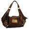 Καθημερινή καφέ τσάντα με ιδιαίτερο σχεδιασμό και διακοσμημένη με μεταλλικές λεπτομέρειες. Με κοντά χερούλια και εσωτερική θήκη χώρισμα.